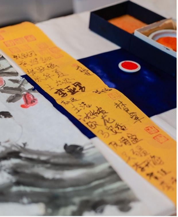 国画创作现场的签名栏