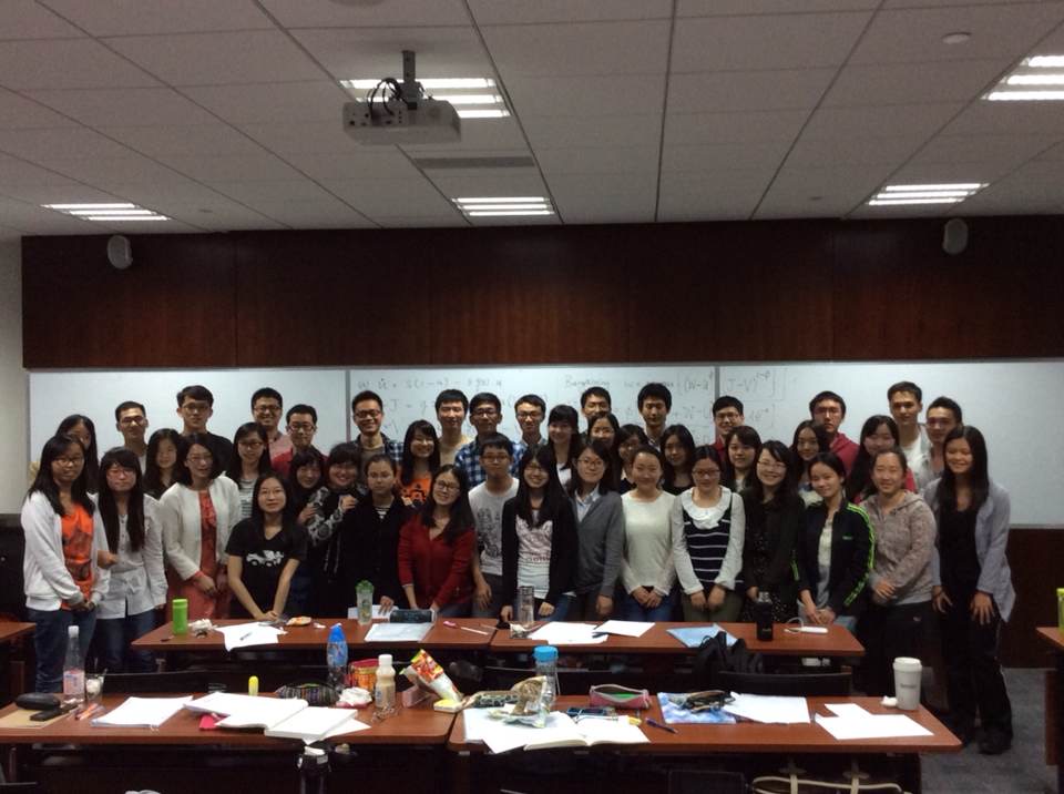 ▲ 冯唐人(中)在学院与港中文的双学位课程中担任助教,课程结束时与同学们合影留念